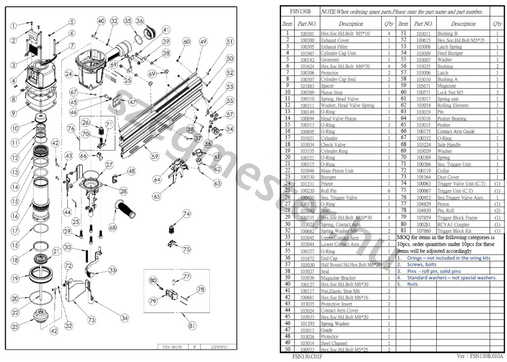 EVERWIN FSN130B szegező alkatrészei